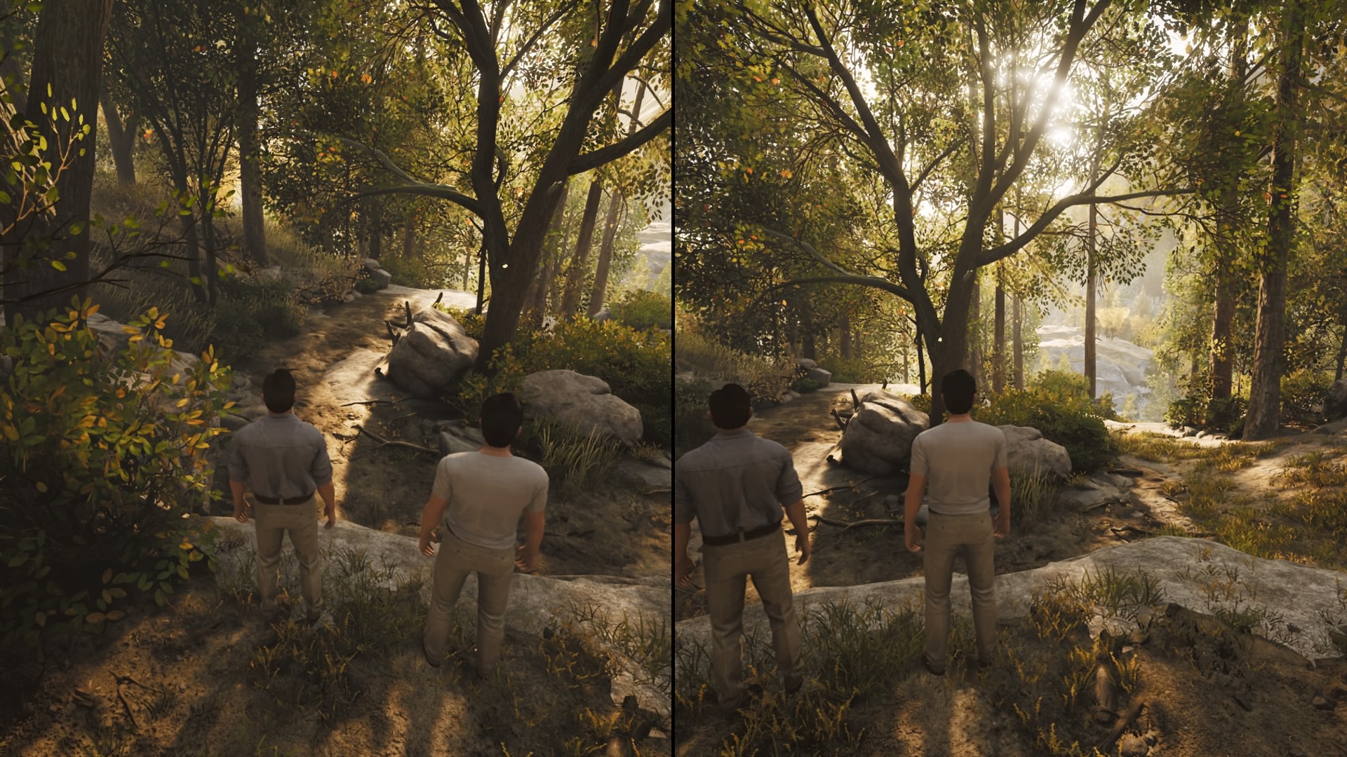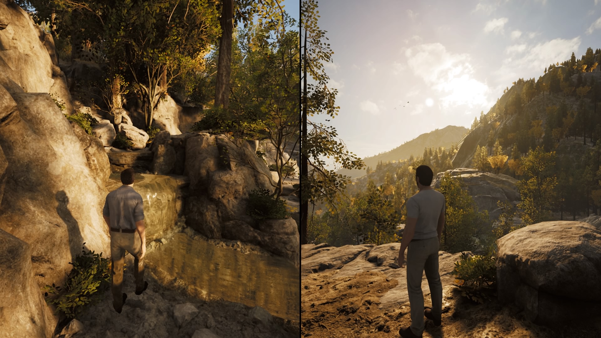Josef Fares comes from the film-making background and that really shows in A Way Out. The scenery is truly beautiful when you get to step outside the prison wall. It’s using the Unreal Engine 4 so it’s bound to look good, but that doesn’t mean its flawless. There were one or two times that the game stuttered slightly or froze for a few seconds. To be honest, this never spoiled one aspect of my gameplay at all, I never expected perfection. There’s a scene after you’ve escaped the prison, and you’re both standing in a vast wooded area over-looking the mountains and rivers where you just want to encapsulate that moment for as long as possible…it was so beautiful and excellently rendered. The facial expressions could definitely use a little lift though, even while happy or shocked, Leo and Vincent looked like they spent a little too long in the botox clinic.