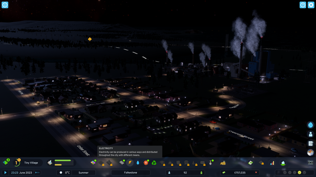 In addition to hitting the milestones, you now earn upgrade points that aid the unlocking of development trees. From roads and electricity through to fire & rescue and the police, each discipline can be enhanced and upgraded. For example, from a basic fire fighting service you can work up to a helicopter depot and also construct large emergency bunkers for refuge from natural disasters. It is all certainly involved as far as the simulation builder goes.