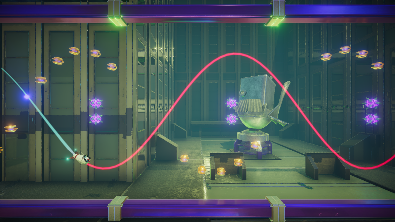 Next on my list was developer Upper Room’s side scroller Wavey the Rocket. I spent a while hovering and watching other people play before I sat down in the hot seat. The principle is simple, navigate your space ship from the start to the end of the level while avoiding obstacles. The concept that makes Wavey Rocket one of the most frustrating but also obsessive games you will ever play is the mechanic that is utilised to control the rocket. A waveform. Anyone that has ever played Spiderman on the PS4 will remember the waveform puzzles whereby you needed to line the wavelengths up to fix the signal coming from the tower. Wavey Rocket kinda has that concept in that you need to adjust the amplitude and longitude of the waveform which becomes the path that your ship will fly along. The initial level starts off fairly simple but once it begins to get faster it is surprising how quickly you get the waveform wrong and are left watching your ship follow it’s course into a wall. The trick seemed to be to watch the waveform and not the ship however because you are constantly altering the height and length of the wavelength you need your ship to clear the upcoming obstacle before you adjust it for the next one. Once you have mastered the controls it is down to you to wow the world with the speedruns that can be achieved. Looking at the times on the leaderboard there is some serious competition here!