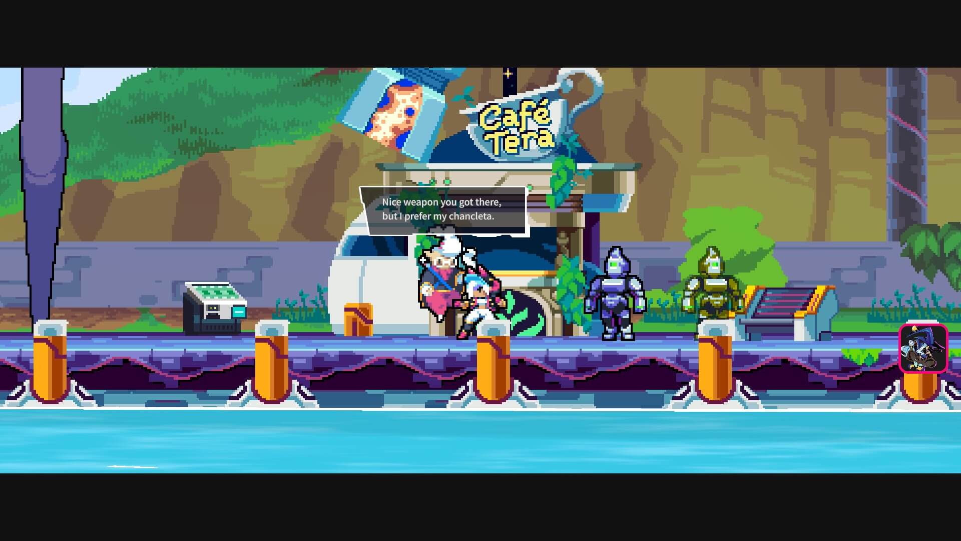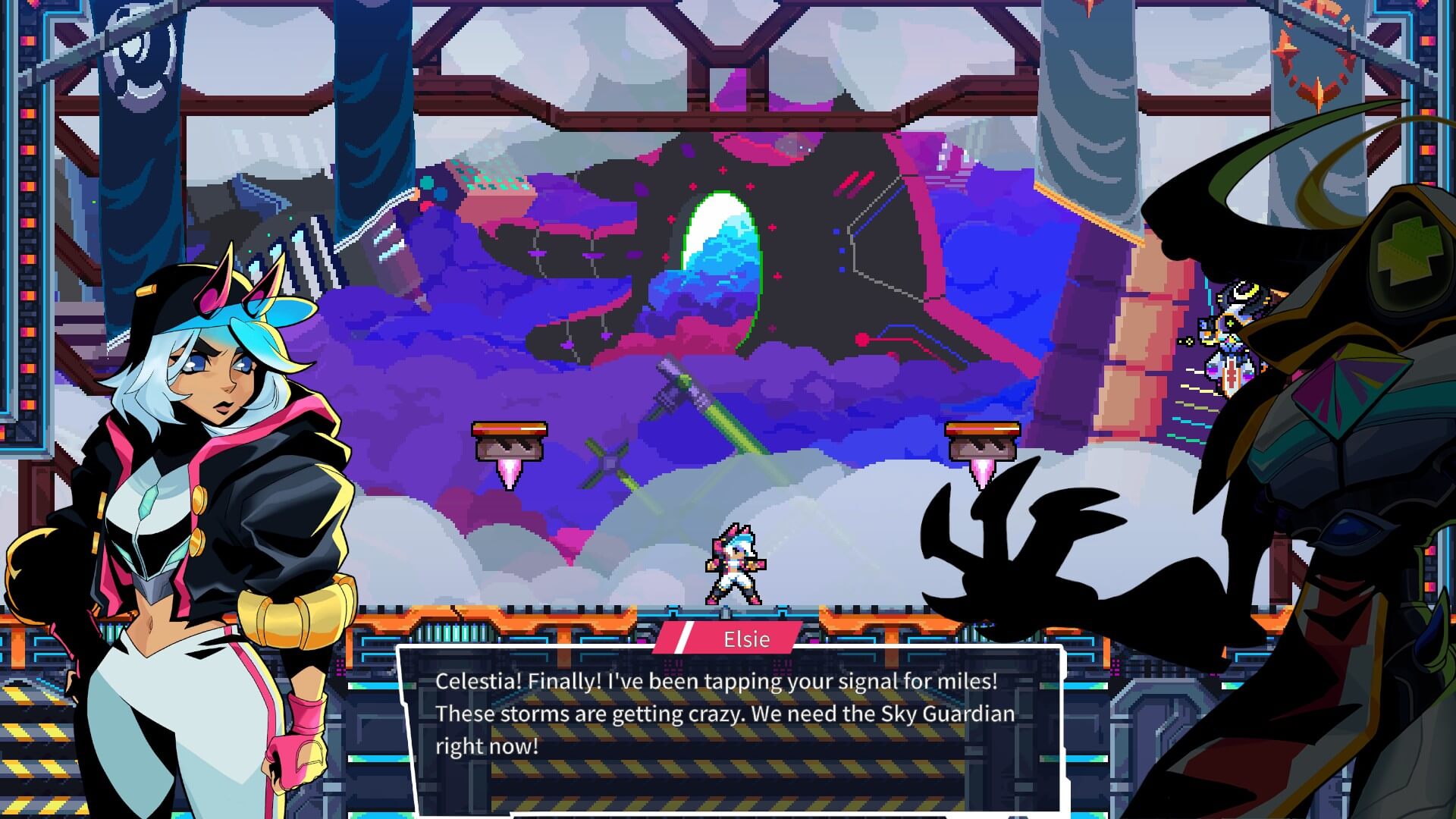 Then there’s the music. I honestly believe this music was composed by people from far into the future who felt pity on us and thought we deserved to hear the music of their time. It gives the vibes of classic Megaman Ost from the X series. Yet identifying the difference between the two is quite rewarding. The voice work was also absolutely phenomenal. I am now a big fan of Rachel Morales because of her line reads for Tera. Visually and aurally Elsie gave me that nostalgic feeling of having my Hispanic family talk to me and offer cafecitos whenever we’re catching up on each other’s lives.