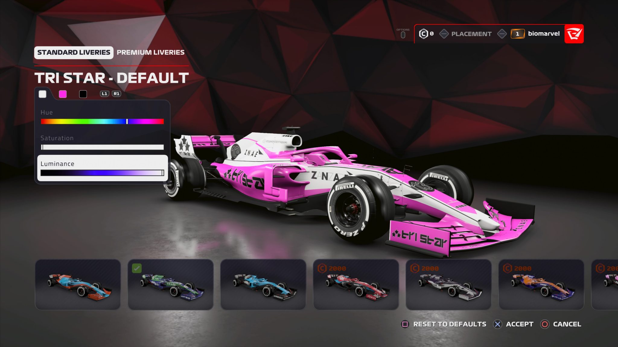 The options are massive for what you can customise, and then you can even create your own livery for your car and character. This allows you greater customisation than just the standard livery options on the standard teams.