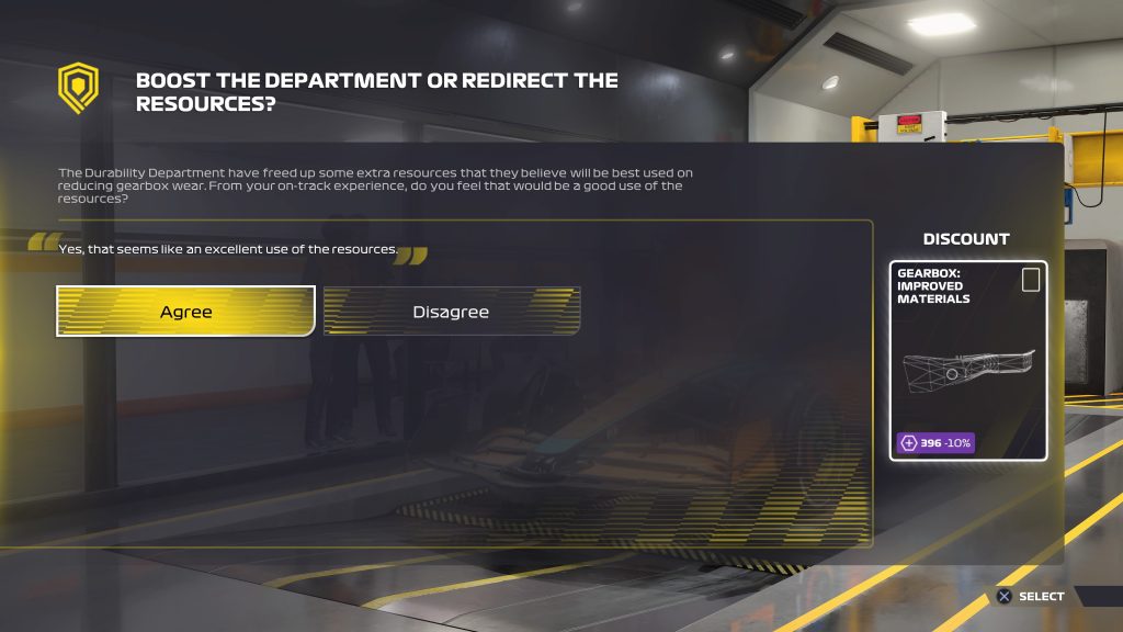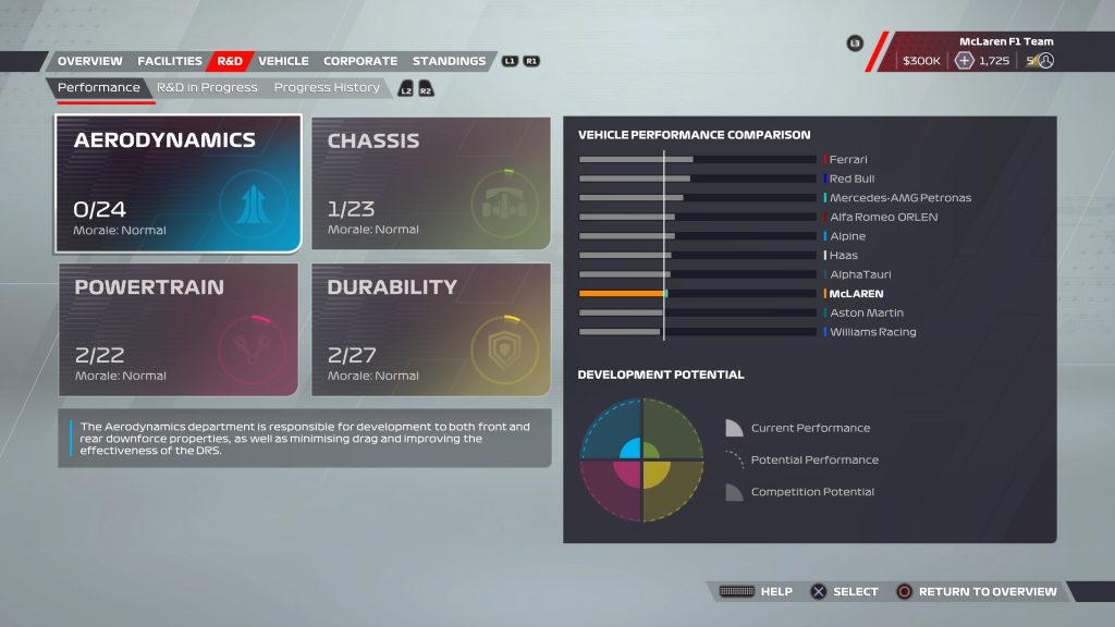 The UI is nice and simple, and from what I have seen it looks almost identical to last year. They have probably kept the design because it works and for a newbie like myself it was easy to use. There were prompts all over the screen advising what could be done and where to go next. Obviously, I went for a look a the R&D section and kicked off some upgrades before the season started. I was unsure what to upgrade, thankfully the inbuilt AI helps out with this one! At this point, I just wanted to play.