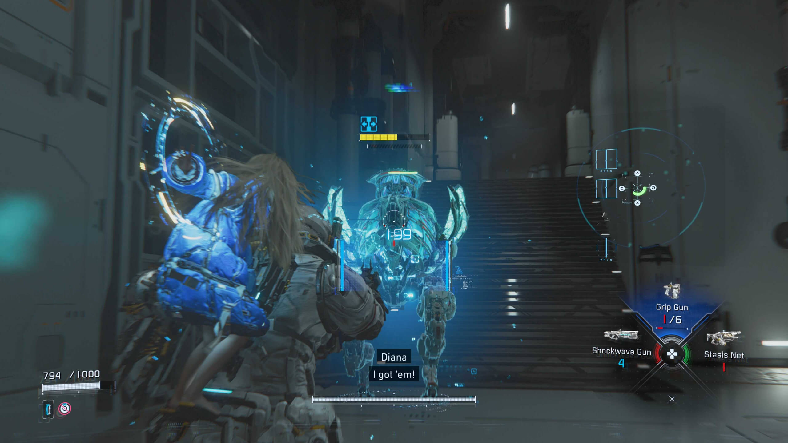 We have a lot of ways that you can build can be focused on. You can update your suit, primary gun or Diana. Which in my playthrough, I balanced it out to make sure that I don’t create an crutch and create my own issues. If done correctly and you can dodge away whole hacking and shooting, then you can beat a boss on your first try.