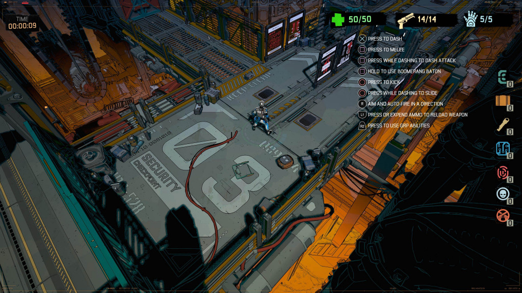 I don’t often compare games however the basic controls are similar to those seen in Hades but with an added edge of a shooting weapon being available at all times. At the end of each room you get to pick your reward. Whether that is more credits to spend during your runs at fabricators or electronics to upgrade your rival weapon defence systems for future runs. It’s all up to you! If you die during a run the current guard then turns into a zombified corpse. You can then go to find and defeat them on your next run for further awards. Believe me, you’ll die a lot, but it’s worth it!