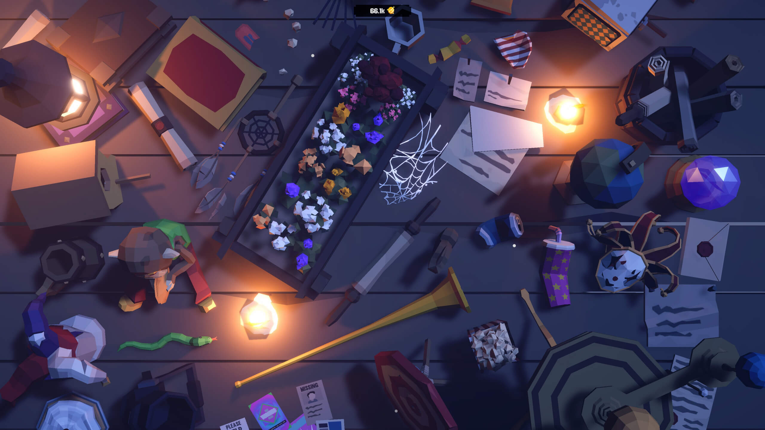 So, the graphics of the is mostly low-poly 3-d surfaces from the cards to the objects around us. There are moments when the fairy or jester speak, it’s in a pixel art style. I did enjoy the fact that the cards we can get have special backgrounds. Which makes it easy for anyone to tell the rarity once you understand the logic behind it. There’s even the interactable objects once you unlock the upgrade to look below your money making setup.