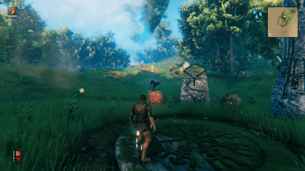 Now you’ve spawned into the world, Hugin greets you. Hugin is a raven who is effectively your guide to the game. When there’s something new to learn, Hugin will pop up informing you he has stuff for you to learn, or, a new objective for you.